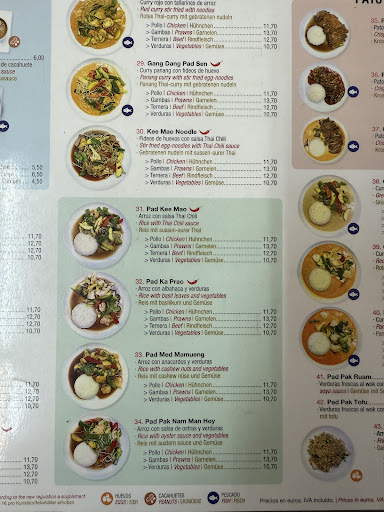 Read morePequeño restaurante tailandés familiar. Fuimos 8 personas, de los cuales, 2 niños pequeños y un bebé. El servicio ha sido pésimo por parte de la camarera (seguramente la hija y los cocineros, sus padres), no muy amigable. Cogimos una bebida de coco adicional de la estantería y, acto seguido, un vaso con hielo. Al parecer no le sentó bien o simplemente soltó un comentario desafortunado: “aquí hay lata fría”, haciendo referencia al frigorífico de al lado. La comida llegó bastante rápido, pedimos 5 platos y entrantes. A grandes rasgos, comida buena, bonita y barata. Resaltar que las raciones son bastante grandes, prescindibles los entrantes. Nosotros pedimos rollitos y no eran muy buenos. Otros aspectos, la vajilla era simple y, en nuestro caso, con desperfectos, aunque lo importante es el sabor más que la presentación. Tiene terraza, por tanto, sí se pueden traer mascotas (desconozco si dejan entrar). En resumidas cuentas, pequeño local familiar con un servicio muy mejorable, pero con comida decente acorde al...