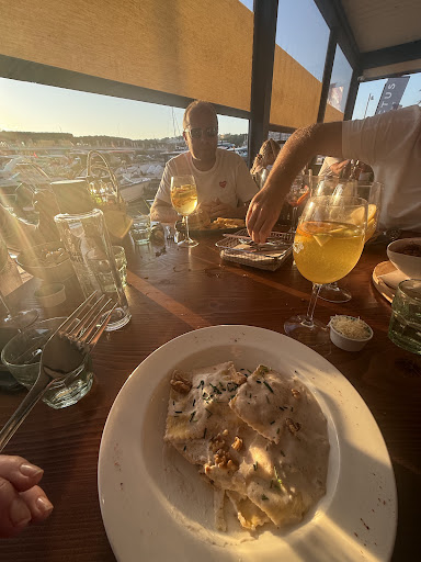 Extremely unpleasant and arrogant staff. We arrived as a group of 5 people after docking our boat in the marina. The restaurant had two large empty tables for 6 people in the shade, but the waiter seated us at a small table for 4, added a chair, and placed us in direct sunlight—on a day when it was 30°C.