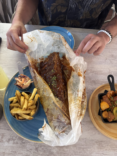 Absolutely loved our romantic dinner here! Live music? They have it! (And not the obnoxiously loud kind, but the perfect acoustic + vocals atmosphere at just the right volume so you can still have a conversation) Stunning views? Check! It was so lovely watching the sky turn pink and purple from our table. Amazing, funny, charismatic and caring staff? They have that too! Vlad, Tamsin and all the other staff who served us were absolutely outstanding. Vlad was especially thoughtful and offered to sit us at a table with better views when he noticed how excited I was to take pictures. He was also excellent with the food and drinks recommendations! Tamsin was so very sweet making conversation with us and seeing them so happy definitely made our experience so much better and lifted our spirits. Delicious food? You will DEFINITELY find it here! We had the chorizo potatoes with peppers for tapas and the bbq smoked ribs. We had to share everything for two as, fair warning, the food portions are huge! The smoked ribs were perfect, melting right off the bones in a smoky bbq sauce. They came with a nice portion of fries and coleslaw salad which made the best combination. Amazing drinks? Of course. I had the classic apperol spritz which was perfect. We will definitely come back here next time we’re in...