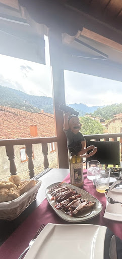 Estuvimos el mes pasado visitando Mogrovejo. El pueblo pequeño pero bonito. Apenas había gente y dada la hora pensamos que lo mejor era buscar sitio para comer primero (eran las 13, 30) y reservar para ver el pueblo tranquilamente, como siempre solemos hacer. Entramos en éste establecimiento y la verdad es que nos fuimos porque no nos hicieron sentirnos cómodos. Me asombra leer los comentarios que tiene. Tal vez sólo sean amables los días de mucho turismo. Hacía mucho frío y preguntamos si tenían caldo. El señor nos miró como si hubiésemos pedido un vaso de sangre Jajaja. No es tan raro pedir un caldo si es Enero!!! Preguntamos si reservaba mesa y en alta voz nos dijo que no. Optamos por quedarnos a comer primero y como vimos unas escaleras le preguntamos a la señora que había si podíamos subir ya al comedor. Y nos contestó como si tuviésemos que ser adivinos que arriba era vivienda no comedor. Que teníamos que elegir una de las mesas que había allí mismo. Todas al lado de una puerta que da a la terraza con vistas que todo el mundo mantiene abierta para salir a hacerse fotos. Sin más, decidimos abandonar!!! Cada vez valoramos casi tanto o más que la comida el trato recibido. Es sencillo. Tratar como te gustaría que te tratasen. En este caso muy poca amabilidad. No repetiré. Comimos en Los Molinos, por cierto. Genial todo... Tanto el trato, como la comida y el precio. Las vistas...