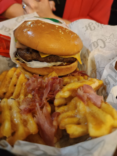 Read moreHamburguesa de pollo espectacular!!! La california no se queda atras riquisima! Pero hemos pasado un mal rato por ir a probar las hamburguesas allí, venimos de turismo y no conocíamos como iban los menús de carls Jr, después de que nos tomarán el pedido nos sentamos a comer, pero una de vuestras camareras se confunde y en nuestro menú nos pone 3 alitas de pollo, pensamos que venía con algún menú (porque como mencione, es nuestra primera en entrar a este establecimiento). Pasados unos minutos nos percatamos que se levantan una mesa a reclamar las alitas, por lo que yo llamo al camarero y le digo que la han puesto en nuestra mesa y que habían comido alguna, pues el mal momento que nos hizo pasar este camarero fue increíble e incomodo, cuando el error lo tuvieron ellos!! Son ellos los que deben de saber donde va cada comida y más si es un acompañante, por que de ser un plato es más que obvio que lo hubiéramos regresado, pero al ser un acompañante y nosotros no conocer los menús, era difícil. De igual forma la manera correcta no era hacernos pasar una vergüenza, sino por el contrario darle una...