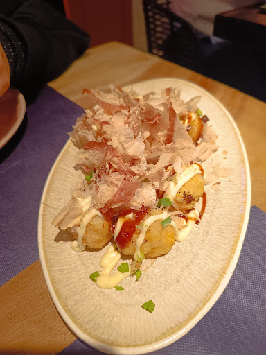 Read moreUn verdadero descubrimiento. Fuimos con ganas de probar un tipo de comida diferente motivados por reseñas de otros usuarios y fotos que te hacen salivar antes de acudir al local. El local no es aparentemente muy grande pero está muy bien distribuido.Como nota curiosa, la cocina se encuentra acristalada frente a las mesas de los comensales, detalle que da un plus de transparencia al lugar. En nuestro caso pedimos tres raciones y dos postres y fue suficiente. Los Takoyakis de gambas al ajillo,tremendos incluso pedimos un poquito de pan para untar. Nos hubiéramos comido tranquilamente otro plato!!. Los otros dos platos que comimos fue el Ssam de cochinillo y Lasaña wonton, platos muy sabrosos y equilibrados. De postre para coronar la cena, nos tomamos una torrija de brioche y una porción de tarta de queso cremosa con Idiazabal. Esta última me resultó muy curiosa por el equilibrio que tenía entre el dulce y el salado. Digno también de mencionar la atención recibida, personal muy atento, simpático y resolutivo cuando tenían que resolvernos alguna duda .Salimos totalmente encantados, gracias por vuestro buen hacer! Repetiremos sin duda, hay que seguir probando...
