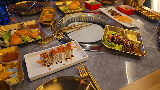 Read moreLa comida estaba riquisima. Un buffet de sushi y comida asiática de mucha variedad, desde entrantes comunes como pollo frito, una ración de patatas, hasta ramen, fideos y platillos de sushi que no tienen nada que envidiar a otros restaurantes de su estilo, con la gran distinción de que ofrecen además una parrilla en el centro de la mesa en la que puedes cocinar variedad de carnes, marisco y pescado. Se pueden pedir 10 platos por ronda y por persona, y destaca la posibilidad de tomar postre incluido en el menú, que no se suele ofrecer en este tipo de lugares. La calidad y el sabor de la comida, excelentes, y la atención del personal y el ambiente y decoración del restaurante fueron increíbles.