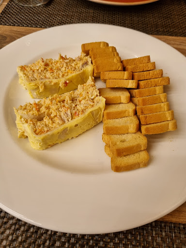Doesn’t look like much on the outside but inside is stylish. We had very nice and creamy stuffed peppers, percebe (gooseneck barnacles) and spider crab (a disappointingly small one but fresh from their fish tank), followed by cheesecake and chocolate cake. All of it was excellent quality. The recommended wine was very nice. would go their again (but hope for a bigger...