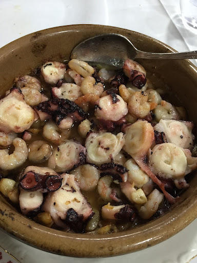 Read moreEn la entrada luces un cartel que es un restaurante más recomendados de España, en la puerta recomendado guía michelin 2018 , seleccionado Repsol 2019… creo que FUE con estas distinciones un buen restaurante.. a día de hoy es mediocre muy mediocre, nos dieron una mesa al lado de la barra, como mesa contigua los de casa (familia del que creo que fue el fundador y galardonado con dichas recomendaciones antaño ) volviendo la mesa en la barra pequeña, minúscula sin sitio para poner la comida teniendo sitio dentro ( mejor decir que no tienen sitio en vez de dar esa mesa en un habitáculo que parece que el trastero, papeles, carpetas , etc en la mesa de al lado. La comida …. Tortilla de camarón seca con un exceso de cebolla y sin camarón ( quisquilla), arroz de ciagalas … sin sabor, quemado, cigala congelada del n2 Y de baja calidad ) ya no arriesgamos a probar postre, café pasable , la bodega dice en su página extensa bodega…. Y la definición sería escasa bodega , albariños a buen precio, resto de DO con un sobre-coste elevado. En definitiva no lo recomiendo, quizás si fue lo que publicitan pero con el abuelo de la famia la nueva generación no vale y la futura escuchando ( sin querer ya que estaban en la mesa de al dado) le queda mucho ...