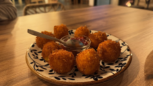 Read moreEl local es amplio y aún estando lleno de gente no se siente agobiante ya que las mesas están bastante separadas, tienen mesas altas con taburetes y mesas bajas, el ambiente es acogedor y muy agradable. Tiene acceso a personas con movilidad reducida. La comida es muy buena de lo que he podido probar una especial mención a la tosta de pulpo, también muy ricas las bolitas de queso con mermelada de pimientos de piquillo, y si lo que quieres es compartir los huevos con bacon y patatas fritas es muy contundente y con mucha cantidad. La tarta de queso al horno está muy rica y con sabor a queso de verdad. Volveré porqué me han quedado ganas de probar las...