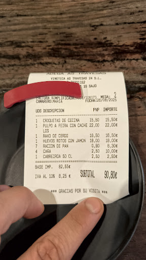 Read moreTodo iba bien hasta que el camarero me pegó una vacilada... Pedimos pulpo y raxo, como no podemos tomar patatas ni pan les dijimos que no nos trajeran el pan, que el pulpo lo pusieran sin las patatas y si nos podían cambiar las patatas del raxo por un par de huevos (como me hicieron en A Viña das travesas) Nos lo cambiaron y todo bien hasta que fuimos a pagar. Nos cobraron le pan, se lo indicamos, nos dijo que nos invitaban a unos cafés más y chupitos pero como ya estábamos tomando café y no podemos tomar alcohol le dijimos que no que nos abonara el pan y listo. Entonces el camarero torció el morro y cuando vino como el dinero del pan lo dejó de malas maneras en la mesa y nos pegó la vacilada "a los huevos estáis invitados" Si me hubiera dicho que me los cobraba cuando pedí el cambio le habría dicho que se lo pagaba, me daba igual. Es la manera más absurda de perder un cliente...