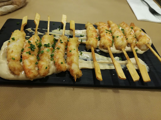 Lo conocíamos ya de su época en A Corveira y nos encantaba. Ayer repetimos,pedimos croquetas de queso arzúa y piquillos,langostinos crujientes y zamburiñas.... Las croquetas buenísimas,como recordaba. Los langostinos,no tan crujientes,aunque el alioli de soja q los acompaña está de muerte. Y las Zamburiñas con la emulsión de grelos...pues demasiado aceitosas. Si fueran a la plancha,vale...el aceitito les da la vida...pero llevando la emulsión ya... Cuando llegaron a la mesa,al meter cuchillo para probar,el aceite debajo de la emulsión ya saltó a la ropa....😞 Despues...Chuletón de vaca...La carne estaba buena,sin más. Y Presa ibérica... Estaba buena...las patatas quizas poco hechas,pero bueno.