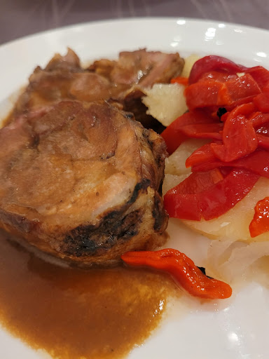 Read moreHemos venido porque mi pareja había venido en el pasado y le había encantado y hoy, siendo San Valentín, me quería traer a un sitio nuevo. El servicio es muy lento aunque la camarera es muy agradable. En uno de los primeros se han equivocado y han traído otra cosa. Al cambiarla, había un trozo de plástico azul dentro del plato y, la comida estaba más bien fría. Me ha traído el pan y, si bien es cierto que me ha preguntado si quería que lo metiera en el horno para tostarlo y yo le he dicho que no hacía falta, al partirlo he visto que estaba aún un poco congelado por dentro. También hemos notado que a dos mesas les ha traído, junto con la bebida, antes de que llegara la comida, una "tapa" de cortesía, cosa que ni a nosotros ni a la mesa de al lado han traído. En los segundos, habíamos pedido arroz negro y un chuletón, con suplemento, MUY hecho, sin nada de sangre/rojo. El arroz estaba bueno pero muy poca cantidad. El chuletón... Lo han traído con sangre. Le he pedido que lo volviese a pasar y me lo han vuelto a traer rosadito. Me lo he comido así. El postre muy muy bueno. A la hora de pagar, me quería cobrar un agua que no me había traído preguntando si me lo quería llevar y la botella de vino, que, al decirle, la botella en este menú entraba, me ha dicho que sí. En definitiva. Que pesa más lo malo que lo bueno así que...