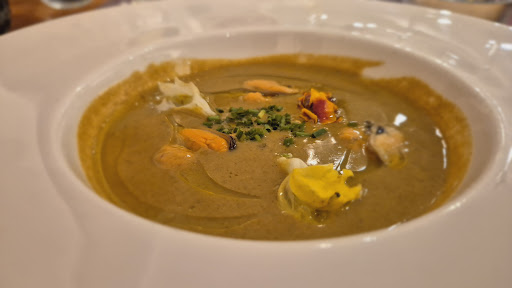 Un sitio estupendo. Es interior, así que no esperes vistas al mar; pero se come muy bien. Aviso eso sí que no hay cobertura. Fui dos días. El primero estaban cambiando menús y solo tenían el menú del día por 19,90. Me pedí unas navajas (no las recomiendo porque me pareció que tenían algo de tierra) y fideos rossos (riquísimos). Ese día probé también de primero los panzerotti de ricotta y setas con salsa carbonara, que me gustaron mucho (aunque aviso, son contundentes), y de segundo colita de rape al ajo (que no encajó con mis gustos personales pero estaba muy bien preparada). El segundo día fuimos un grupo grande de gente con niños pequeños. Pedimos el menú para compartir por 28,90: la paleta con el pan tumaca es toda una exquisitez, las gyozas estaban buenas (y mira que no soy mucho de gyozas) aunque para comerlas en moderación, y los mejillones deliciosos aunque hubiese preferido la mayonesa de toda la vida porque la de lima que pusieron no me gustó. De segundo pedí el arroz negro y me encantó. Probé también el rodaballo a la bilbaína y la merluza con verduras. A mí no me gustaron especialmente porque me pareció que las salsas eran demasiado fuertes y no dejaban apreciar el sabor del pescado, pero es cuestión de gustos pues los comensales que pidieron los platos sí salieron muy satisfechos. De postre la tarta de chocolate no consiguió convencerme, aunque se debe principalmente a que no soy aficionado a los postres del tipo bizcocho caliente.