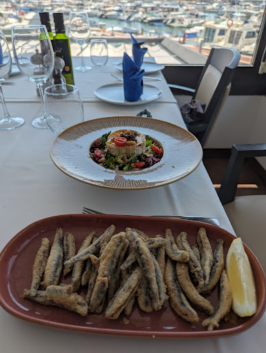 Restaurant review : Menu had a good selection of dishes. The prices are a bit on the expensive side. There are cheaper restaurants in Cambrils . But the view over the marina was lovely, and you are paying for that. Food was very tasty. Goat cheese salad was delicious. Portion sizes were on the small side. Service could have been better. One waiter was a grumpy man in his twenties, clearly did not want to be there. But overall I would eat there again.