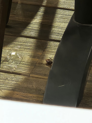 It was honestly disgusting. My wife nearly vomited, and our daughter was in tears. The crushed cockroach remained under the napkin for several more minutes before someone finally came to remove it.