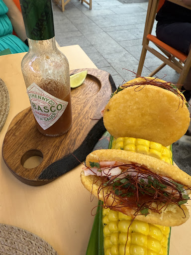 No podía faltar el "Uramaki de Foie", que resultó ser igualmente delicioso, y unas "Arepas costeñas" que complementaron perfectamente nuestra velada. Para cerrar con broche de oro, pedimos un postre para compartir: "La Haba de Cacao". La presentación fue una obra de arte, ¡realmente espectacular!