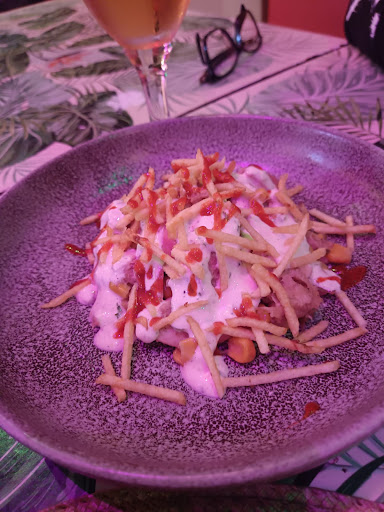 Desde el momento en que entré, quedé cautivada por la decoración del local, que destaca por su originalidad y por los detalles que rinden homenaje a diversas culturas y continentes. El ambiente es acogedor y prometedor, lo que te invita a dejarte llevar por lo que está por venir.