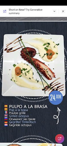 I never fall for the guys calling you into their restaurant until now! W Big mistake, I should have trusted my instincts! The waiter (a spandau ballet tribute act look alike) didn't even have a smile for us, his body language made it very clear he wasn't happy to be our server. That said we all have bad days so whatever. Then the food. Steak and chips all looked good and my hubby was happy. Our sons pizza, difficult to mess up to be fair. But my octopus, what a waste of money, it looked like it was served on someone else's leftover lumpy mashed potatoes. See the photos, what I got versus what was advertised. Nice view of the port though! The manager should be...