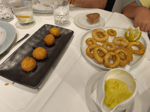 Read moreLa verdad que de un restaurante de está categoría esperaba muchas cosas que no se cumplieron. Pedimos de entrantes ostras, tartar de atún con caviar de Beluga, anchoas, croquetas de marisco y pescado y calamares romana con dos salsas. Y de segundo arroz senyoret y steak tartar. Pues bien, nos trajeron las ostras y las anchoas a la vez, terminamos esto, que lo comimos en el mismo plato, el brioche de la anchoa con el agua de ostra y limón. Continuamos con los platos de entrantes y, por supuesto con los mismos platos que había en la mesa, todo mezclado. Llegaron las croquetas que tuve que poner en el plato del agua de ostra, y la parto para probarla y, no valoro si era buena o mala o sí era una croqueta o un pastel de pescado empanado, el caso es que salieron frías, pero no contentos con esto se lo comento a la camarera y me dice imposible porque acaban de salir de cocina que las he visto yo, le digo perdona te estoy diciendo que están frías por dentro, su contestación de un restaurante que tiene y pretende mantener una estrella Michelin, pues eso ya no lo sé y, se quedó tan ancha no dió solución alguna. Llegaron los calamares y, aquí ya dijimos que se los llevarán, estaban duros, insípidos, sin dos salsas y, a la camarera le sentó mal que lo devolviera pero es lo que hay. Pedí 3 veces una botella de agua y hasta que no vino el metro con la paella no la trajeron. Y a este punto de la cena seguimos con los mismos platos, las botellas y vasos vacíos del aperitivo del inicio de la comida encima de la mesa y con muy mala atención. Mi hijo se mancho con el alioli todo el polo y le digo a la camarera, perdona mira como se ha puesto con el alioli y, su contestación fue: nada no pasa nada. En vez de decirme cómo en cientos de sitios de supuestamente está categoría, ofrecerme un producto para la limpieza de la misma. Por último el arroz y el steak, no tengo palabras, el arroz sin más el marisco del arroz era congelado y con un sabor a amoniaco increíble. El steak era un preparado de albóndigas antes de hacerlas bola, la carne estaba caliente, no estaba cortada a cuchillo y la calidad de la carne .... Simplemente pongo está crítica para que puedan mejorar su servicio, calidad de la comida y saber estar para un restaurante...