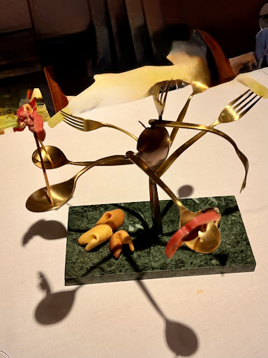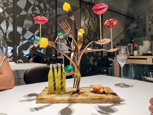 We opted for the tasting menu, which was a true culinary journey – playful, creative, and deeply rooted in Mediterranean flavors. The presentation was stunning: amuse-bouches served on intricate artistic stands, vibrant seafood platters brimming with the freshest prawns, mussels, razor clams, and lobster, as well as beautifully plated tuna tartare, lobster fideuà, and imaginative desserts like rose-infused cotton candy.