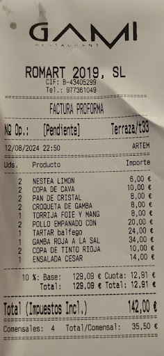 We normally eat at Acuamar and Montserat when coming to Cambrils. But today we tried Gami which turned out to be an interesting choice. The GREEN salad specially created for the wife of the owner was excellent in its different tastes. The Mexican Taco was well made. For main course I chose the Seabass in Salt and my wife had the Spare Ribs to which she is an expert. Number1 - however - is still a steak restaurant in Amsterdam - also after eating Gami‘s version. As wife's verdict was - too sweet. Even superb texture and Smokey. Interestingly my Seabass was better than Acuamars even the following potatoes was cold and had metal pieces in it. But texture and taste was perfect and the potatoes very tasteful, which I tried before getting hit by metal. 4 stars to Gami. It would have been 5 without the metal. Nevertheless...