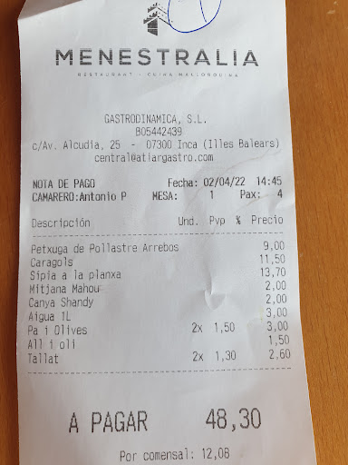 Es una pena escribir esta reseña, pero Menestralia te da una de cal y una de arena. He ido unas cuantas veces y, en ocasiones, te encuentras una comida muy buena y otras una comida con mal sabor (patatas al horno las que te pones con una lechona que lleva horas hecha de piel blanda). No siempre dan el mismo nivel de calidad. Parece como si fuera otro restaurante al que visitarte la última vez. Hay veces que vas y aciertas con una variedad de comida suficiente y decente, pero otras ves que hay dos platos menos para servirte. Yo creo que siempre se paga lo mismo y no menos cuando te ponen menos y peor. Por favor, señores responsables del buffet, cuiden los platos que ofrecen, porque un viernes por la noche (es cuando voy siempre) hay platos que se notan que llevan muchas horas hechos y recalentados. A veces, los fritos mallorquines están muy secos, aunque se agradece que no estén demasiado grasos. Respecto a la base o sofritos para ciertos platos estaría muy bien (con ello ganarían más clientes) que no utilizaran ingredientes elaborados con sangre, ya que somos muchos que no la aceptamos en nuestras dietas o no la deseamos. Ustedes dirán que ciertos platos se han hecho siempre en Mallorca así, pero para utilizar un buen botifarron no es necesario que lleve sangre (me permito decirles esto como sugerencia). Los postres esta bien. Respecto al ambiente del lugar es muy bueno, limpio y de buena iluminación. Por favor den buena calidad siempre y no un viernes sí y al próximo no. Ya hubo una vez que deje de ir una larga temporada por este...