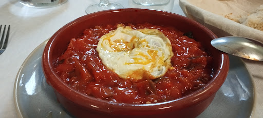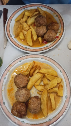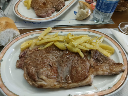 Como el menú que había no nos ha convencido : Pollo con arroz Ensalada de pasta Judías verdes (de bote)digo esto porque cuando estábamos esperando para subir al comedor hemos visto como una de las chicas sacaba cuatro botes de un almacén que hay en frente de la barra.Y tres segundos : Pluma de cerdo Boquerones fritos Tortilla de patatas hemos decidido comer a la carta.Hemos pedido de primero dos pistos que ha sido lo peor de todo ,lamentablemente era "de bote"y aunque mi marido se lo ha comido a mi no me ha gustado ,me lo he dejado todo.De segundo unos filetes de lomo con huevos fritos y patatas esto si que era casero y mi marido un entrecot que a pesar de poner en la carta que era carne de la zona venía de Ávila ,no ha estado mal.Un buen trozo de carne que ha tenido la mala fortuna de tener bastantes nervios por dentro .El servicio ha sido lo mejor ,gente simpática , amable y servicial y el local limpio y muy bien montado pero el detalle de la comida es algo que no se puede pasar por alto y más cuando están poniendo pisto manchego .Te estás esperando a una cosa casera y el resultado es...