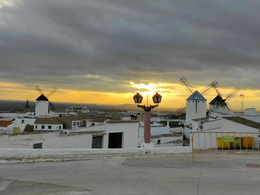Best little café to visit near the windmills at Campo de Criptana. Loads of souvenirs of all types, artisanal things made of ceramic, cork, leather, tee-shirts, socks, you name it, they've got it! The coffee and chocolate filled holadres were great! The terrace area is so nicely decorated and heated (a must in winter months)! There is a lovely "Mirador" which allows you to look out over the city itself or face the opposite direction for a view of the windmills. This place also serves Estrella Galicia beer (my favorite) and must be a great spot at night. The bathrooms were spotless. I highly...
