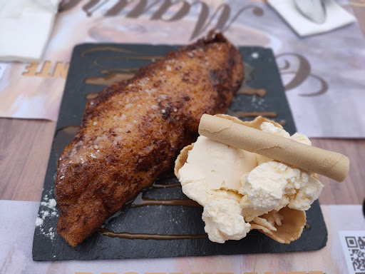 La experiencia culminó con un postre memorable: el brownie con helado. El brownie, denso y húmedo, equilibra perfectamente el amargor del chocolate con una dulce suavidad que se deshace en la boca. Coronado con una bola de helado cremoso, el contraste de temperaturas entre el cálido brownie y el fresco helado crea una sinfonía de sensaciones. El toque final de chocolate fundido no solo añade atractivo visual, sino que intensifica la experiencia gustativa.