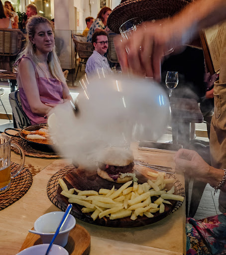Read moreFirst of all - forget the bad reszension of S.J. This girl with bad manners was sitting next to us. You might see her when i was taking a picture of the burger serving. The girl was giggling the whole time with her table mate like a 14 yrs old girl. You can not take her serious. The camarero was a very friendly and kindly joking guy - he was offending nobody in this area at all. The food we got ( 4Pers. ) was really good - Burger, noodles and Paella - We njoyed that spot and evening and felt treated really outstanding good. Pitying that people try to talk dirty about such...