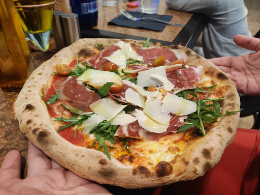 Era la primera vez Habia mucha gente. Mucha en el establecimiento y mucha en los soportales que esperaba para entrar, porque lloviznaba. Conseguimos entrar despues de que la camarera anunciara a los ocupantes de la mesa que habia otros, nosotros, que esperaban para poder cenar. Las pizzas bien. Los cichillos mal. No hay manera de cortar la pizza. Comimos bien. El servicio un poca agobiado. Puede que la causa fuera la lluvia. El ambiente bien, exceptuando unos padres maduros primerizos que chillaban a sus hijos en lugar de calmarlos y tenerlos controlados. El local no es responsable de esto. Se puede recomendar siempre que no sea en vgilia de fiesta que es cuando acuden adultos con sus hijos y los dejan incontrolados y gritando lo que "carga"...