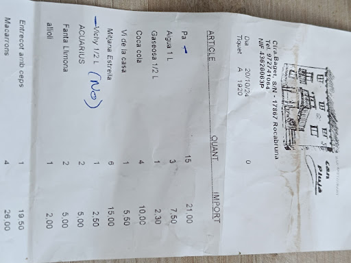 Read moreESTAFA!!! No vayan allí a comer. Eramos 15 personas, nada mas llegar pusieron 3 cestas de pan con 2 llescas cada una, un total de 6 llescas de pan. EL PAN NO ESTA EN LA CARTA CON PRECIO. Cuando llego a casa y reviso el ticket veo que me ha cobrado 15 unidades con un total de 21€, me esta cobrando 1.4€ por cada yesca de pan. La llamo, reclamo, y me hace un bizum de 6€. La vuelvo a llamar para indicarle que me cobre solo 6 llescas, que me devuelva el dinero que falta y me dice que no, que 6€ ya esta bien, que no me piensa dar nada mas. Ahora me voy a iniciar una reclamacion formal al consumidor. Los restaurantes pueden cobrar el pan siempre que el coste aparezca en la lista de precios de la carta o en s defecto se le indique al comensal en el momento de serviselo. No lo tienen en la carta ni nadie nos...