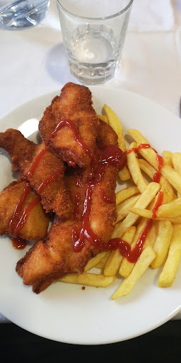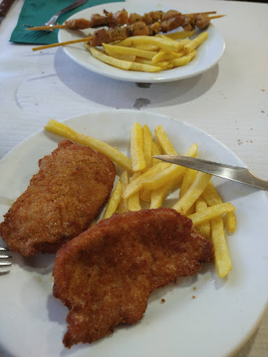 Los dos primeros platos, aceptables, nada a destacar... Unos entremeses bien, de pueblo, ricos. Los canelones que pedimos tanto mi pareja como yo, aceptables, aun que algo fríos por dentro. El drama vino con el tercer plato. Mi pareja pidió pollo rebozado con patatas y yo carne de pincho con patatas también. El pollo parecía carbón de lo seco que estaba. Literalmente eso no se lo pones ni al más maleducado de los comensales, ni a tu peor enemigo. La carne de pincho.. bueno, se podía comer, pero de nuevo, prácticamente fría. Pero las patatas.... eso si que era un auténtico despropósito, todas crudas y con un mar de aceite en el fondo del plato. Nos las dejamos casi todas.