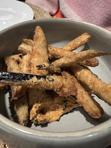 Anoche cenamos en The Fábula.......y desde luego hace honor a su nombre. La comida nos encantó y siendo cena y 4 comensales pedimos 2 platos de pica pica a compartir y luego ya un segundo para cada uno. Entrantes: los palitos de berenjena con una salsa que estaba excepcional, y unos saquitos cuadrados con queso brie y otra salsa que estaba de miedo..... De segundo ya fue tartar de salmón, steak tartar, hamburguesa doble trufada y hamburguesa de garbanzos..... Todo especialmente buenísimo...... En cuanto a precio pidiendo 2 postres a compartir: cheese cake y yogur con maracuya pidiendo un vinito blanco Hermanos Lurton creo recordar fueron en total 137 euros....lo cual no me parece una locura. Cenamos bien y te llenas de forma "correcta"..... Relación precio calidad creo perfecto.....pero esto ya es muy subjetivo. Si alguien cree que es caro recomiendo ir entonces a un KFC y pedir cubo de pollo frito que es barato y llena......si no es el caso y os gusta cultivar el paladar este sitio es altamente recomendable. Sin embargo he de decir que la mención especial ,siendo la comida muy muy buena, se la tengo que dar al Staff. Todas las personas que nos atendieron o vimos por el comedor eran chicas casualmente.......la mención no va dirigida por el sexo del staff sino por el trato y el cariño mostrado a la hora de servir en las mesas y dar recomendaciones. Se nota cuando la persona que te atiende le gusta lo que hace. Y es de agradecer enormemente. Luego en honor a la verdad sólo por el trato del servicio merecería la pena repetir . Un 10! El local es muy acogedor y bonito,decoración moderna,lo percibimos cuidado y limpio. Fundamental. Desde mi punto de vista nada que objetar. Si las circunstancias nos lo permiten repetiremos pero hasta entonces lo que sí puedo hacer es recomendar el local. Merece la pena. Saludos a todo el equipo de The Fábula y muchas gracias de verdad por hacernos sentir anoche en la mesa...