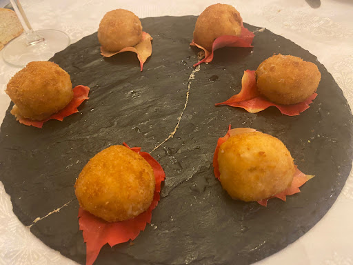 Read moreRestaurante excelente. El comedor es precioso, con unos frescos en las paredes muy bonitos. El servicio inmejorable, nos han tratado todos muy bien, muy amables y simpáticos. Un trato muy cercano y los tiempos de servir muy cortos. La comida, como no, era espectacular. Para mí sobretodo los postres, nos han traído 4 diferentes y estaban todos muy buenos, el dulzor justo y nada pesados. Y el arroz con bogavante muy rico, arroz con cocción perfecta y con 2 bogavantes, langostinos, cigalas, calamar, almejas y mejillones... Recomendamos llamar para reservar y pedir Un sitio al q...