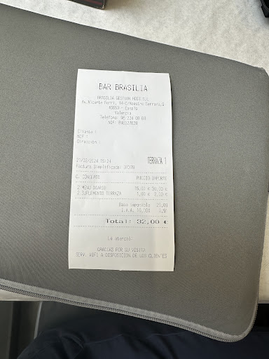 Read moreFui para comer ya que por trabajo me pilló en esa zona. En cuanto a la comida del menú del día, lo que se ve ahí (algo normal, la hamburguesa de espinacas de una reconocida marca de supermercados de la zona pero bueno). El precio del menú diario son 15eur (postre O cafe y creo recordar que eran 3 opciones de primeros y otras 3 de segundos). Nos ubicamos en la terraza y a la hora de solicitar la comida en ningún momento vimos carta, fue todo cantado por el camarero, el cual tampoco nos informó de que la terraza (unas mesas puestas en la acera, sin cobertizo ninguno) llevaba suplemento de servicio, la sorpresa fue al recibir el ticket, que sin mayor discusión se pagó sin problema (si le pregunté que de que era eso, y comentó que por servir en la terraza) pero tranquilo, que no me lo tendrás que volver a cobrar ningún otro día.