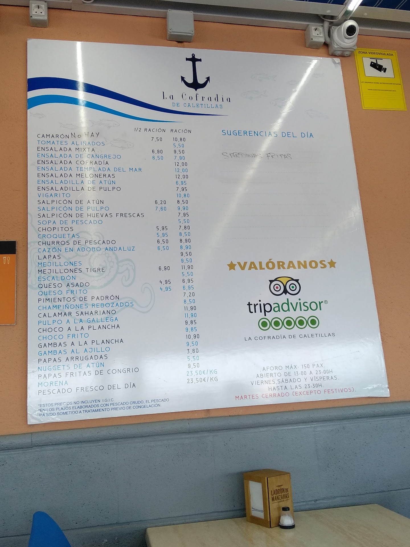Read moreGreat food and great price! I've been here many times and always come back when I go in the north of Island. The kitchen is very clean and the food is great. Portions are big enough to let you share it with another person otherwise you could get half portion. I would recommend 'salpicon de pulpo' and 'chupitos'. You can recognize that place couse is the only one in the seaside walk of Candelaria with fish exposed on a big table viewable from the street but far enough from cars. Sitting area is outdoor on the sidewalk and you can have a beautiful view of the sky and the sea from...