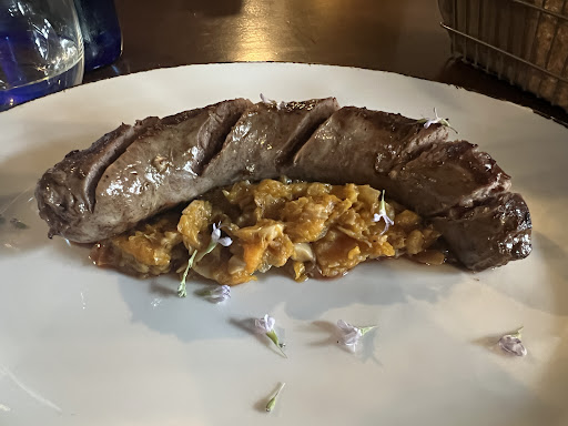 We’ve had lunch at Küme twice during our stay in Candelario, and both times it was exceptional. It’s very much a meat (or fish) place, but the menu is varied and interesting within that. The sweetbread starter in particular was unlike anything I’ve eaten before, and the portion was big enough for two to share happily. We had the Chuletón steak first time, and it was absolutely perfectly cooked and great quality meat. Huge also. Took the remainder home and had a great steak sandwich the next day. Staff are attentive and friendly. The violet ice cream with chocolate brownie was also an interesting desert, with unusual and well-paired flavours. Good variety of great wines reasonably priced. Thoroughly...