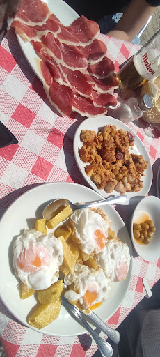 Read moreLa verdad es que nos atendieron muy bien en la hora de la comida. La comida tipo raciones y salvo que, la única pega que puedo poner es el exceso de aceite en las patatas, la comida nos dejó buen sabor de boca. Los postres caseros (arroz con leche y natillas) muy buenos. Mala experiencia al salir del bar y entrar a la tienda de al lado donde venden productos típicos de la zona y que parece ser negocio alternativo del mismo bar por la puerta que me pareció ver que une ambos locales. La dueña y/o cocinera, o el cargo que desempeñe en el bar, se acercó a mi hija para que, sin motivo alguno, le enseñase lo que habíamos comprado en el museo de la chacineria poniendo excusa de ser ella muy cotilla. Más vergüenza nos ha dado a nosotros que a ella, pensar tras comentar la dantesca situación fuera, que pensasen que nos podriamos haber llevado algo que no fuese nuestro. Una experiencia bastante fea con esta señora que debería hacérselo mirar un poquito. Toda la buena experiencia de antes con la impresión del negocio nos la tiró por tierra la...