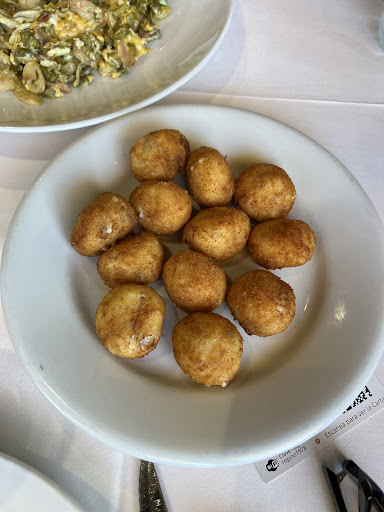 Hemos comido cuatro personas, es sábado, el comedor está prácticamente completo y aún así el servicio ha sido rápido y correcto. Para compartir hemos pedido patatas revolconas con torreznos, revuelto de setas y trigueros y pimientos rellenos de bacalao, las tres cosas muy buenas, especialmente los pimientos rellenos, los torreznos aquí los sustituyen por unas laminas muy finas y crujientes supongo que de torrezno pero parece bacón, está bueno pero prefiero el torrezno de toda la vida. En cuanto a los segundos, pedimos dos paletillas de cabrito, que hay que reservar previamente, unas chuletillas de cabrito y un chuletón de ternera, los segundos estaban todos buenísimos, las paletillas riquísimas y especialmente el chuletón estaba espectacular, de los mejores que he comido. Los postres fueron tarta de queso, flan y flan de chocolate, también todos bastante ricos. Como pequeño detalle en contra fue que en la cuenta en vez de poner los pimientos rellenos de bacalao, cuyo precio es de 10€, nos metieron bacalao, cuyo precio es de 18'50€, obviamente supongo que fue sin intención y un error lo comete cualquiera pero lo que no nos gustó mucho fue que al comentarlo educadamente, no reaccionó como es de esperar, no sé disculpó y le quitó cualquier importancia, ya sé que no tiene mucha importancia pero si no revisas la nota te llevas 8'50€ de más y por eso esperas aunque sea un "uy, perdón, lo siento". Todo esto no quita que en mi opinión se come de 5 Estrellas como le he puesto y que sin...