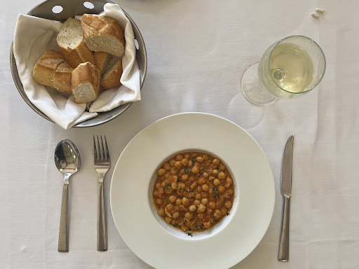 I opted for the €16,00 Menú. I ordered a first course and a second course but the helpful server suggested that I try the mountain rice instead of my option. I took her suggestion and changed my first course option to garbanzos with fish and shellfish. I finished with a great piece of tarta Santiago. I am glad that I took the suggestion because my lunch was outstanding. Such great food and incredible value. Service was friendly and welcoming too. Oh, and the building is worth a visit in...