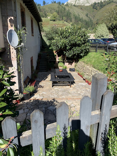 Un lugar entre montañas que con un día con sol hizo que destacase su belleza Comedores amplios y con ambientes diferentes Nos recibieron con un cóctel refrescante que consistía en un bloody Mary que encaja a la perfección en el momento y lugar Al sentarnos nos recibieron con un pan de cebolla elaborado por ellos y pan de masa madre para untar la mantequilla La fontana de Cudillero que con un sabor a limón estaba deliciosa Encargamos uno de los menús que consistía en el menú largo Empezando con unas croquetas de jamón ibérico crujientes y jugosas , seguimos con bonito en escabeche de verduras buena presentación y un combinado de sabores rico al paladar A continuación bacalao con su pil pil y licuado verde suave en boca y deliciosa salsa Seguimos con torto de maíz con huevo y crema de boletus bien emplatao y con un torto crujiente que acompañaba bien con el huevo y las setas Fabes con berberechos y pantruque de papada Yo soy de los clásicos que me gustan les fabes clasiques Pero no me defraudaron puestas de esta manera Chuletilla de lechazo con puré de apionabo Para finalizar el menú largo antes de los postres con un arroz con Pitu espectacular Todo con un buen vino de rioja un Muga crianza Que nos potencio los sabores y nos hizo disfrutar un poco más la comida Pasamos a los postres Un arroz con leche perfectamente elaborado y por los comentarios nada que envidiar con los que comieron en sitios especializados Galleta de almendra con crema inglesa y mango natural postre que recomiendo a las persona que le guste las mezclas , la gallega mezclada con la crema y el mango una delicia al paladar Sopa de coco, menta y chocolate sabor a menta y postre refrescante y con el día de calor que hacía fue un acierto en mi elección Acabamos la comida con un una copa de sidra de hielo que para mi fue un precioso digestivo Fuimos en el primer turno que empezaba a las dos de la tarde y lo recomiendo por el entorno y para la vuelta que queda un poco apartado Tuvimos la suerte de encontrar unas personas muy atentas y con un ambiente muy acogedor con muy buena decoración con un local amplio y bien decorado Un...