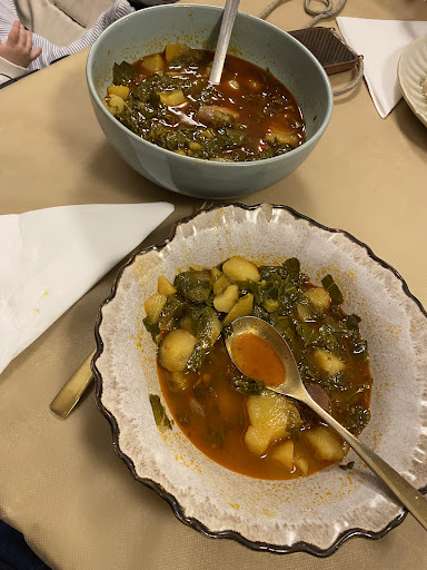 Read moreCalidad en sus platos caseros, como de casa. Un cachopo bien preparado y presentado, muy ricos los escalones con salsa cabales. Los garbanzos con almenas y langostinos (una fuente) bien cocinados y hubiese agradecido que los langostinos se pusieran ya pelados. El pote asturiano ( tb sirvieron una fuente como para 2 o 3 personas cuando era sólo para una) riquiiiisimo!!!!!. El flan de Baileys no me hizo demasiada gracia. La tarta helada tipo comtessa rica y una ración muy grande. El comedor que es acogedor se llenó al completo y el ruido resultaba muy molesto. Pero el gran servicio de los camareros hizo que la comida allí fuese de lo más acertado. Muy recomendado. Además añadir que todo esto fue para tres personas y que entraba todo en el menú por ser día entre semana. 12€ cada uno. Calidad alta para el precio del menú. Es...