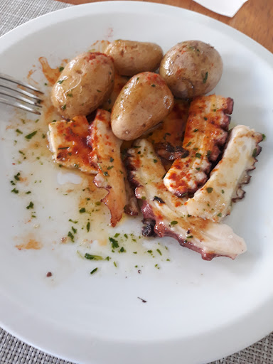 The food was very good. I thought the rice was tasty and there was a lot of yummy seafood in it. The mussels as a starter were also unexpected and had a really nice citrus flavor. The fish was tender and a nice combo with the slightly vinegary sauce and peppers. The percebes were a lot of fun and the portion (250g I think?) seemed pretty big. The wait staff was also very accommodating...