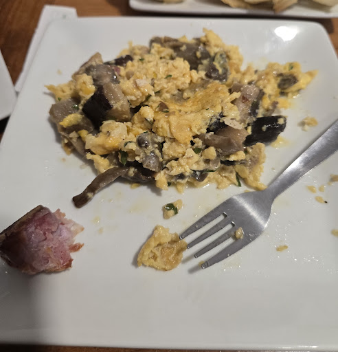 También pedimos un un par de canapés que estaban muy buenos. Tostada untada con tomate, jamón serrano y unas setas aliñadas con un pelín de aceite. Muy rico. Aunque en barra las tenían marcadas a 1,5€ y luego nos las cobraron como "flautas" a 2€. Estaba muy buena aunque nos cobraron de más. Nos dimos cuenta 😉 pero no voy a discutir...