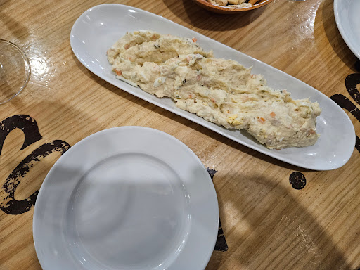 50 minutos para tomarnos unos calamares y unas bravas. Las raciones no salían y eso que pedimos solo cosas de freír y rápidas (chistorra, bravas, calamares, migas) preguntamos y nos dicen que todavía 5 o 10 minutos más, que las migas las tenían que hacer... Le hemos dicho que si no salía la comida que nos cobrara que nos íbamos. El camarero de mesa nos contesta que él también tiene ganas de terminar e irse a su casa, a lo que le contesto que es que él trabaja ahí y nosotros no tenemos toda la tarde para comer. Nos levantamos para pedir la cuenta en barra y me contesta el camarero lento que si no nos la han llevado ya, cuando él era el que nos estaba atendiendo desde el principio. Esperamos a que nos cobren en barra y cuando nos dan la cuenta resulta que nos cobran 4 marineras que no habían traído porque se había acabado la ensaladilla. Nos hemos ido sin comer después de casi una...
