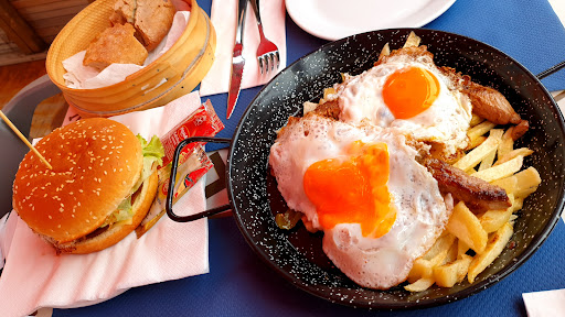 Nosotros fuimos para almorzar y nos pedimos una Sartén de la casa (croca, huevos, pimientos y patatas fritas) y una hamburguesa especial O Codo (carne, huevo, tomate, lechuga, cebolla y queso) y también fuimos otro día para cenar porque nos gustó mucho y pedimos la misma hamburguesa y un bocadillo completo de bacon (con queso, tomate, lechuga y cebolla). La relación entre el precio, la calidad y la cantidad es muy bueno.