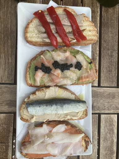 Las tostas muy ricas y el ambiente con las luces por la noche genial pero maaaaadre mía nos tiranos dos horas para que nos pusiesen dos vinos y dos tostas, a la hora y cuarto nos pusieron todo pero las tostas estaban mal en su pizarra (alguien decidió poner ventresca de salmón que ningún camarero conoce) y oye que les tuvimos que enseñar la pizarra para q viesen lo q habían puesto y nos trajesen la tosta de salmón y no de atún, bueno pues lo dicho que otra media hora de reloj para traer una tosta que no requiere preparación.