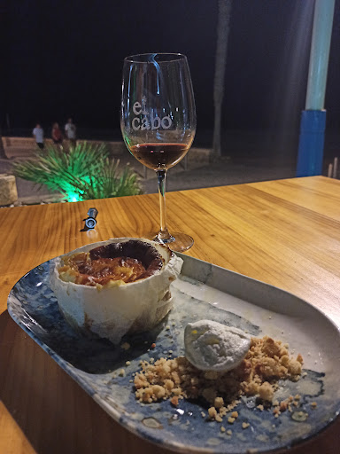 Read moreRestaurante El Cabo , tiene el local en un sitio privilegiado, en primera línea de playa. Mientras comes , puedes disfrutar de unas bonitas vistas al mar . La comida que te sirven está muy rica y tiene mucha elaboración, la materia prima que utilizan también es sobresaliente, aunque las raciones son más bien escasas para el precio desorbitado que le han puesto. No es un restaurante estrella Michelin, por lo tanto me pareció caro lo que pagué al final por cuatro platitos : 1°, CROQUETA DE JAMÓN Y HONGOS , CREMA DE HONGOS , FOIE Y TARTUFO , LASCA DE PANCETA Y BASE DE PALOMITAS.( Este plato me decepcionó sobremanera, ya que a pesar de la cantidad de ingredientes que dice que lleva , estaba completamente insípida y con unos trozos enormes de supongo jamón, que no pude ni masticar, ni tragar )2°, SANDWICH DE BOGAVANTE Y ENSALADILLA LIGADA CON MAHONESA DE AGUACATE , SALSA CREMA DE CENTOLLO , CEBOLLA CRUJIENTE.( Este plato, muy bueno). 3°, TARTAR DE ATÚN, CREMA DE FRAMBUESA Y TIDA, GUACAMOLE. ( Hubiera disfrutado más de éste plato si le hubieran puesto menos crema de frambuesa , ya que tapaba todos los demás sabores y no los pude apreciar). 4°, RAPE KM 0 , VIEIRA Y GAMBA DE CARBONERAS , SU CREMA DE BOGAVANTE Y EMULSIÓN DE PIPERRADA DE CENTOLLO. ( Este plato simplemente me encantó). Nos sirvieron unas trufas de chocolate de regalo al final de la comida. Al principio de la comida nos sirvieron pan y aceite de oliva y un aperitivo a base de Macarons rellenos de foie ( muy bueno todo por cierto) , pero no me gustó nada que a la hora de pagar me lo cobraran, ya que no pedí aquello, me dió la impresión de que se querían aprovechar del cliente y sacarle todo lo posible . Ahí dejo mi reseña, espero que les sirva y ya decidirán ustedes si ir o no a este local. Estén atentos a los pequeños detalles, que al final son los que hacen destacar a los buenos...