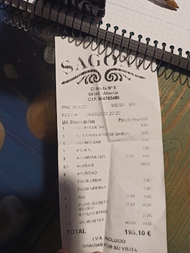Por lo general, muchas gracias SAGONI, me he alegrado de haber encontrado un lugar maravilloso donde mi familia y yo podamos compartir momentos de calidad mientras degustamos platos exquisitos, nos atienden con total decoro y profesionalidad y como no, estando situado en un sitio precioso de primera línea del paseo de la playa de Carboneras.