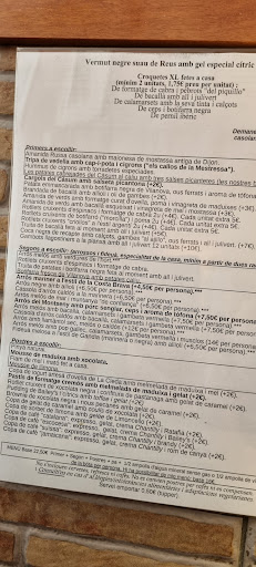 Read moreAyer estuve comiendo con mi familia. Por las reseñas pensé que estaría bien. Que decepción. Lo mejor de todo el helado de caramelo. Un Restaurante arroceria que no se lo recomiendo a nadie y mucho menos incluirlo en mi lista de Restaurantes. El matel de las mesas se te pegaba. ( de no lavarlo, típico de los que no usan una mateleria ) Sillas a cuál más viejas y diferentes. Las paelleras las coges por debajo y te deja la mano negra igual que el mimbre que había debajo. 3€ el bermut en un vaso mediano con 1 cubito de hielo grande y 2 pequeños encima, restando la cantidad de líquido a menos de un chupito. Sangrias no haces por exceso de faena, eso me contestan habiendo en otras mesas. Arroces sin sabor, como arroceria deja mucho por desear. Todas las fotos publicadas en otras reseñas y comentarios buenos, la verdad que no sé de donde han salido. Realmente creo que si fueran a comer a una arroceria de media calidad se darían cuenta de la verdad. Los primeros platos fríos, porque ya los preparan mucho antes así no se estresan. Postres industriales y los que elaboran ellos, de varios días. Secos y malos. Lo dicho lo mejor el HELADO. No vuelvo nunca. Gracias por todo y no hace falta que me respondais, antes llamar a un profesional o a Chicote.