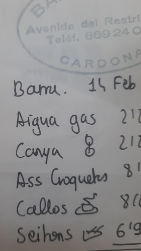 Read moreSmall place with kitchen behind bar but don’t let this fool you!! Food is really good. You can see the couple that run this place put special touches on the dishes. He prepares and she provides excellent service. I was very impressed with the menu, local fare with modern twist. We had lunch but dinner is probably very similar. There are Not many options in Cardona. Don’t pass this up for something else in Plaza. Better quality...