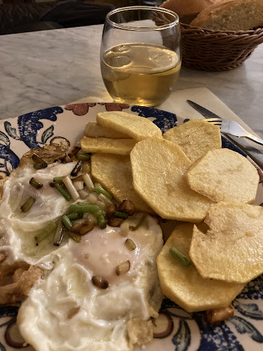 Excellent dinner & service from the entertaining Manolo,a former, professional central midfield footballer for Zaragoza! We asked for tapas & they were dispatched with a touch of midfield class & skillfully paired with the local wines which were excellent too. My favourite was the anchovies drizzled with Russian vodka in a bed of ice. We also had a tasty chicken croquette,gratinated cod and pork sirloin in a mustard and honey sauce.The locals we spoke too were also really hospitable and friendly. Great atmosphere & well frequented so Manolo remains popular...